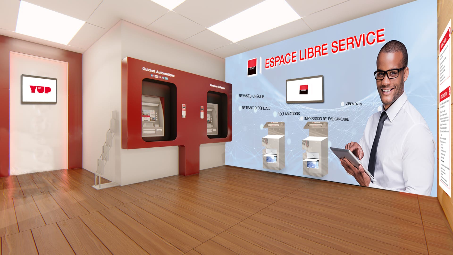 Dans un souci de faciliter les opérations les plus demandées par la clientèle, la SGCI a opté pour une digitalisation afin d’optimiser le temps d’attente. C’est dans cette optique que le 1er espace libre-service a été conçu et réalisé par nos équipes. En plus d’éviter les longues files d’attentes, cet espace offre une expérience client confortable et rapide à ses usagers. Ce prototype fort de son succès a été ensuite dupliqué sur plusieurs autres sites à travers le pays.